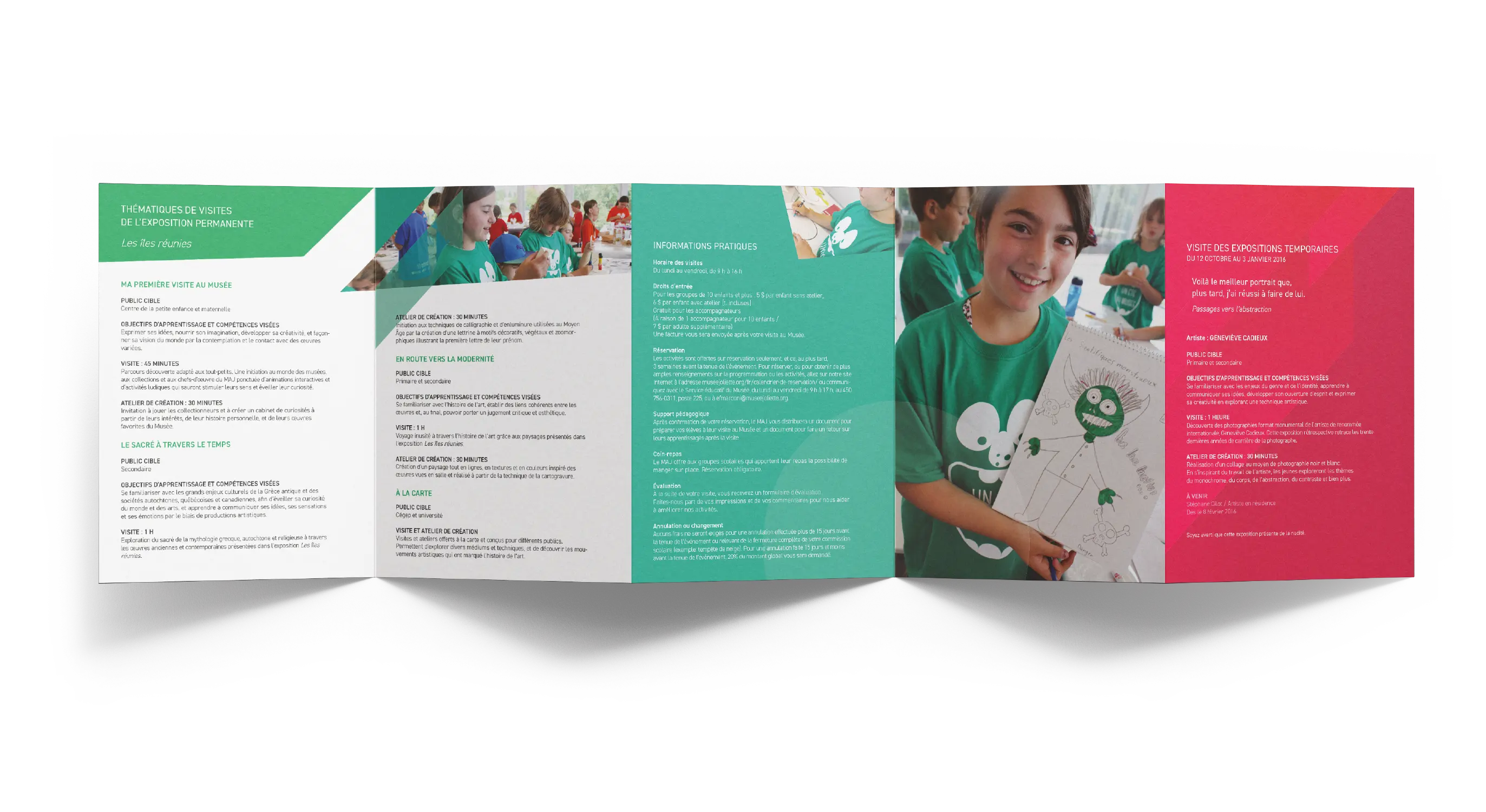 Pour la promotion de ses activités éducatives, nous avons créé un outil de promotion et d'information destiné aux intervenants du milieu scolaire. Dans une formule inspirante alliant géométrie et couleurs, le document présente, d'une façon simple et concise, une foule d'activités adaptées aux niveaux primaire et secondaire.