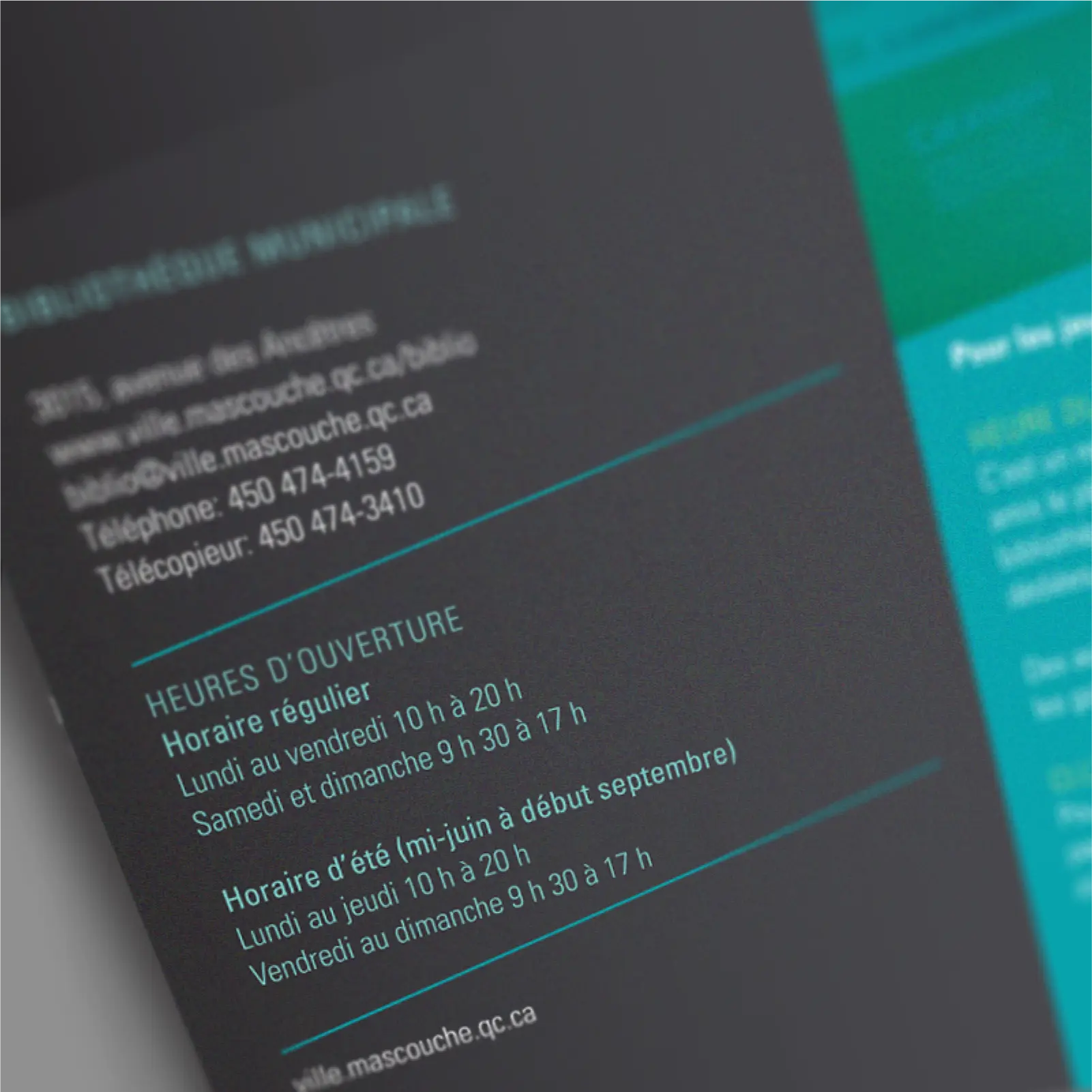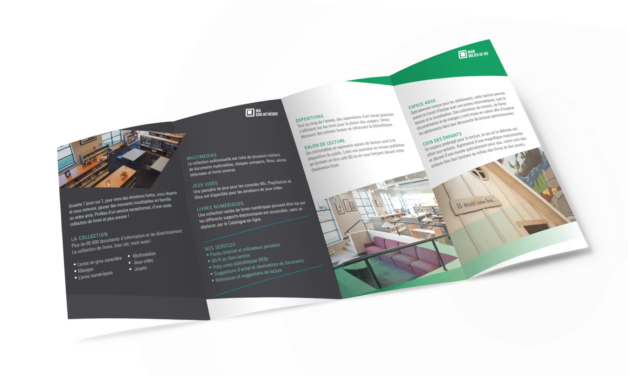 Par divers canaux, la Ville informe, consulte et engage la population dans la vie municipale. Pour répondre à ce besoin, nous avons réalisé divers projets : catalogue en ligne de la bibliothèque, dépliants d’information, campagnes d’affichage, etc.